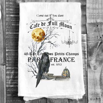 Cafe De Full Moon Paris Halloween Cotton Tea Towels Kitchen