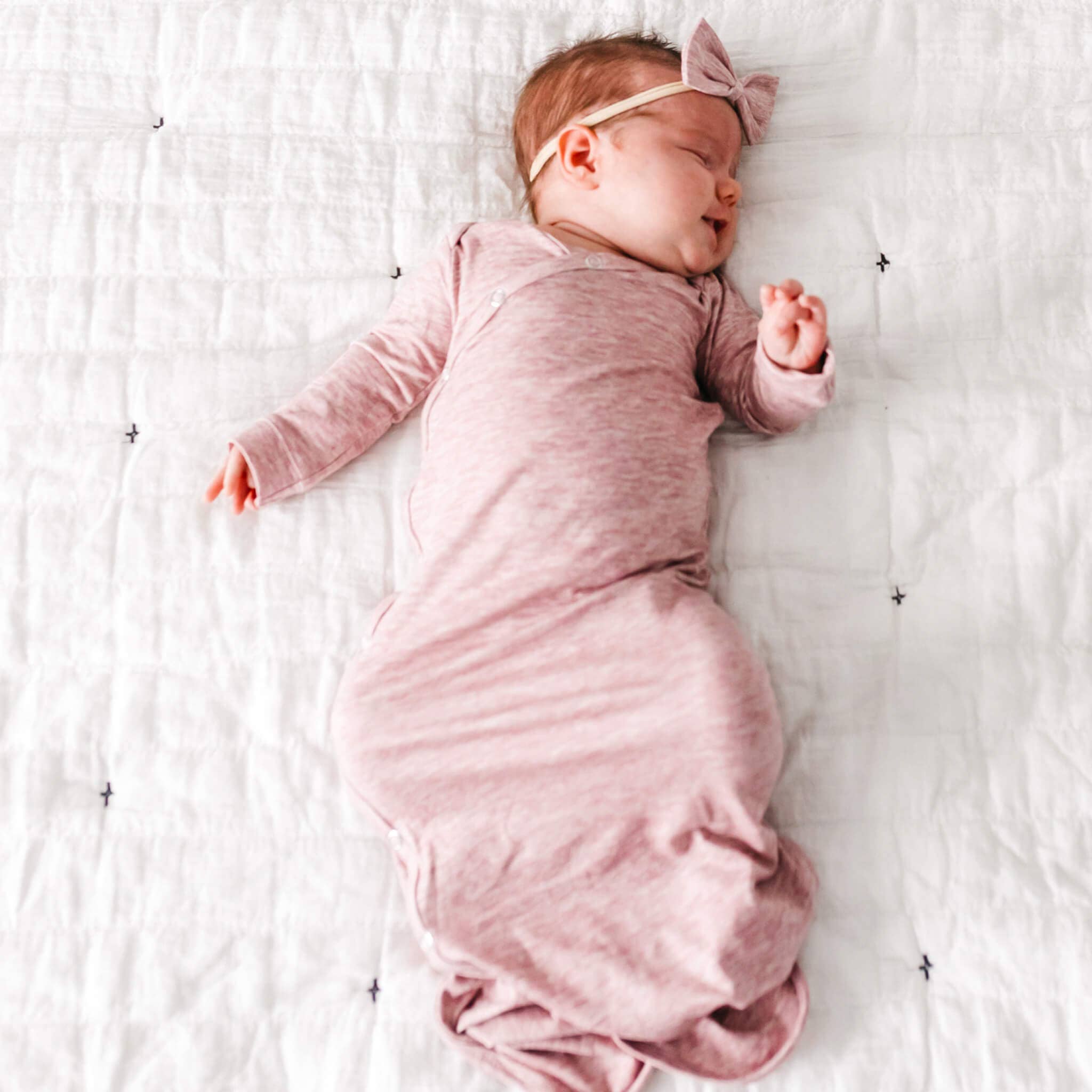 This comfy sleeper is perfect for bedtime! Lightweight but warm, the garment is made from a silky, soft material. This sleeper is convenient for diaper changes as it doesn't have to be unbuttoned or unzipped. The knot easily unties so that diaper changes are quick and easy. The knot is also a favorite because it can be adjusted for baby's comfort and size, and gives them plenty of room to wiggle their legs without exposing them to the cold. Because the knot is adjustable, this sleeper lasts longer as your little one grows! This garment is 95% cotton and 5% Spandex. Newborn Length: 30" 0-3 Months Length: 33" Add a matching blanket! https://shoprocketbug.com/products/rocket-bug-silky-baby-blanket-available-in-many-colors-unisex-boys-girls
