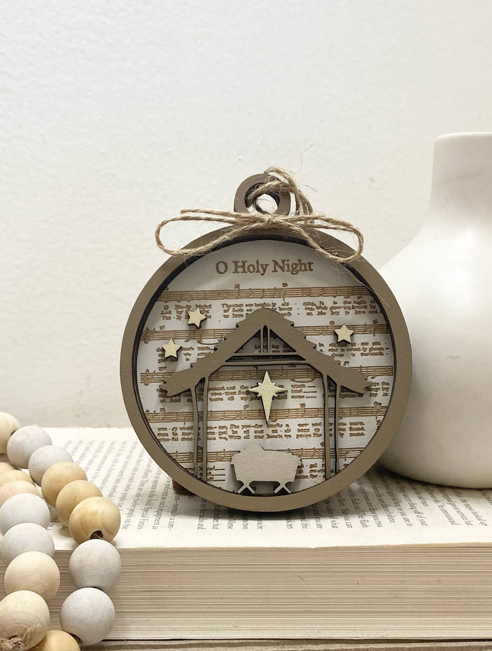 Away in the Manger I love the old hymns; I grew up with them, and their rich words and heritage bring back such fond memories. This ornament will evoke the same feelings for others, serving as a beautiful reminder of cherished traditions and the deep emotional connection they inspire. Perfect for adorning a tree, gift box, wreath, or any Christmas scene, this ornament adds a touch of significance and beauty. Crafted from 1/4" birch and meticulously hand-painted, each piece is created with precision using laser engraving and cutting techniques for unparalleled detail. Handmade by us, a husband and wife team, this ornament is a testament to our dedication to quality craftsmanship. On the Back of the Ornament: You can personalize the back of the ornament by engraving your store name, giving it a unique touch that sets it apart for your business. With two lines available, you can choose to include your website or store location.