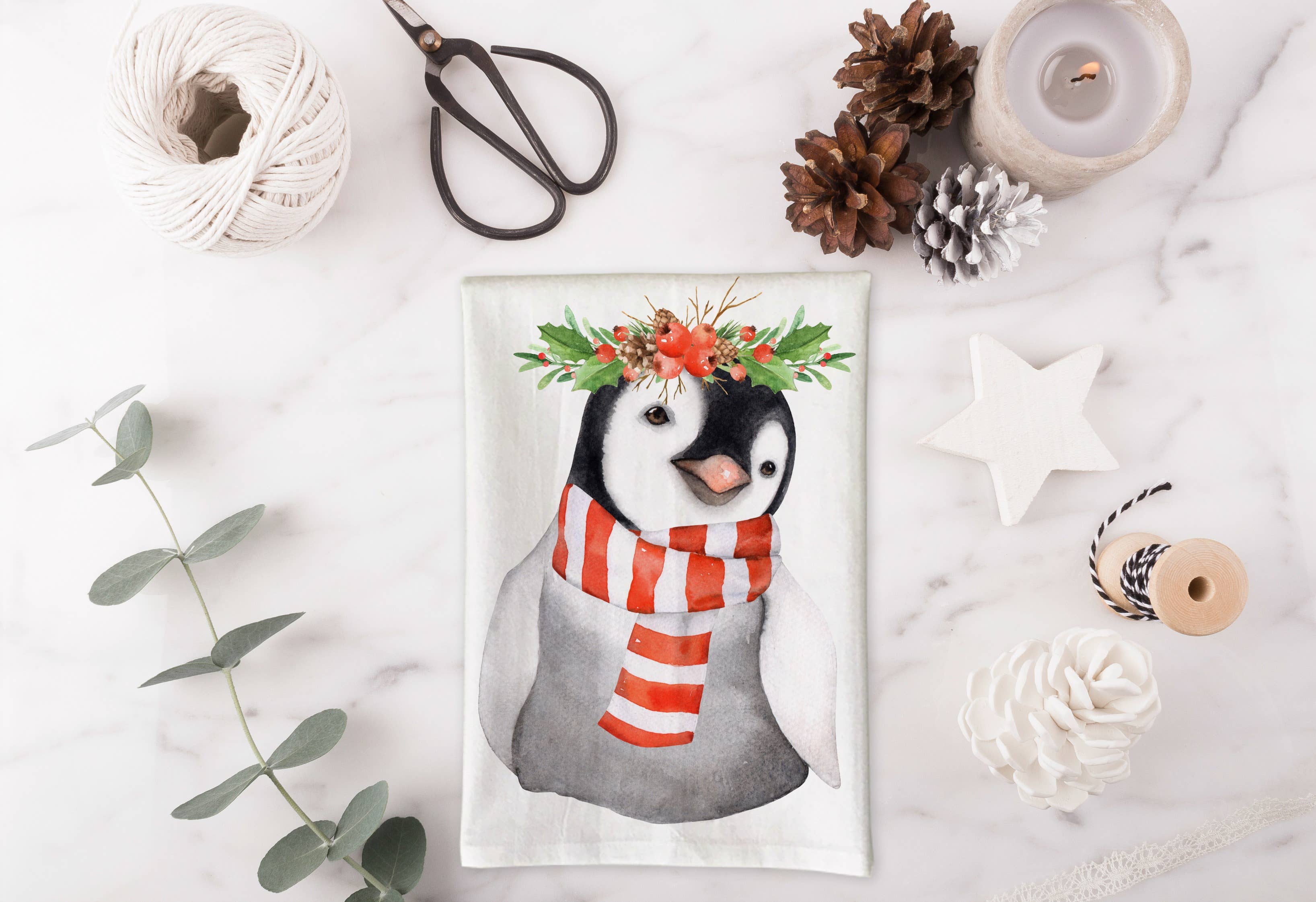 Watercolor Christmas Deer Kitchen Towel Measurements 27 inch W x 27 inch L 100% Cotton