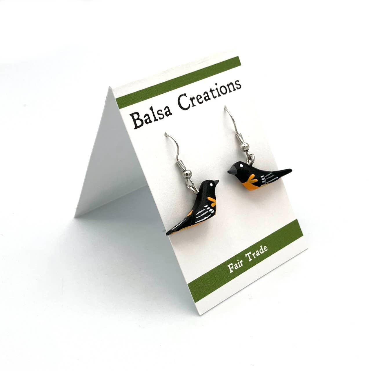 SKU: EAR7043 Made in United States Color: Black, Green, and Silver Is Set: Individual Material: Paper, Resin, Stainless Steel, and Wood Occasion: Elevated Casual and Everyday Style: Artistic and Bright & Bold Theme: Animals Product Language: English Weight: 28.35 g (1 oz) Dimensions: 3.8 x 0.3 cm (1.5 x 0.1 in) Packaging: Recyclable Production: Ethically sourced