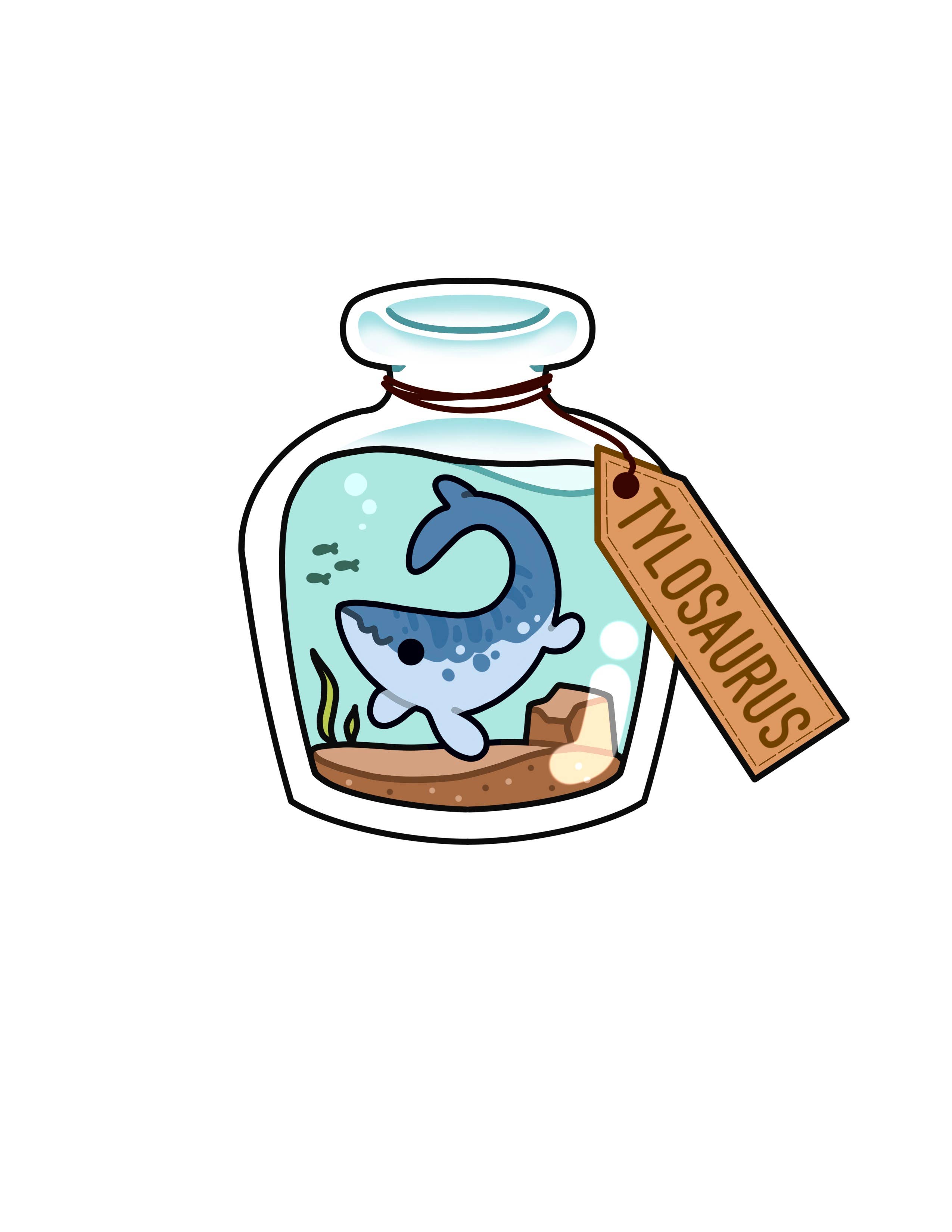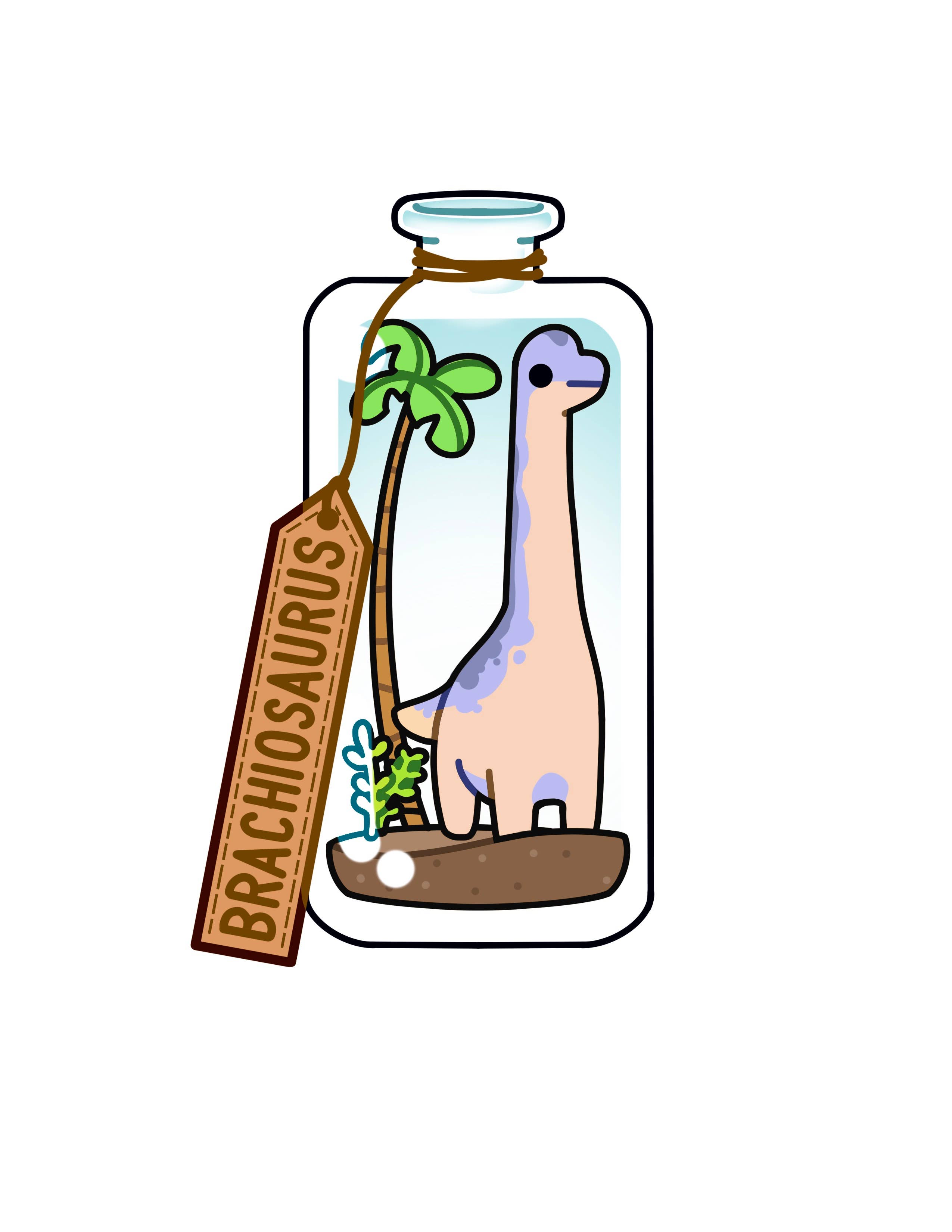 My bookstore gets a ton of dinosaur fans and they love stickers. I went looking for dino stickers for them and found these!!! They are so cute! I love how they are the scientific style and labeled with the names. Please make more of these adorable dinosaurs in bottles with name labels!