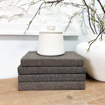 Elegant linen wrapped books for shelf decor and decorating your home are the perfect room accessory. You can use book bundles to add texture, height, and color to your coffee table, accent tables, built-ins, and shelf decor. Price is for ONE espresso/brown book. Build your book set by choosing the fabric style and quantity. Repeat this process to build your set. Check out multiple listings with different colors and patterns too. You will receive books of various sizes and heights. Typical books range from 8.5-9.5 inches tall and 5.5-6.5 inches wide with various spine widths. Our Quality is Unmatched: Brand New Books (other sellers wrap used books). Real, authentic books in various genres. Fully wrapped (cover, spine, and inside cover) for a cohesive, seamless look. Completely solid color throughout (can't see through fabrics and linen). Natural spine that doesn't look boxy like faux books. Intense quality control. In stock, ready to ship.