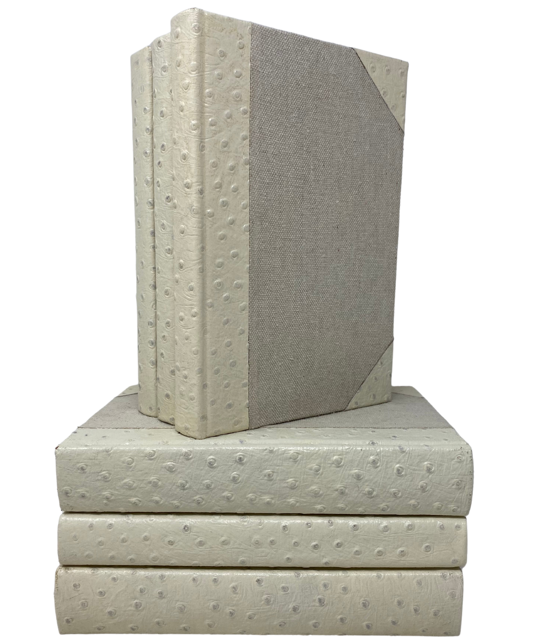Neutral Linen Covered Books for Home Decor - Brown