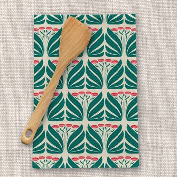 Tea Garden Trellis captures the elegance of vintage garden tiles reimagined through a modern botanical lens. Teal blossoms and olive vines intertwine in a symmetrical trellis, offering both structure and serenity. It’s a refined yet approachable design that pairs beautifully with tea settings, floral collections, and classic kitchen décor. Crafted for beauty, and durability. Made from 100% cotton, this tea towel is soft, absorbent, durable, and machine washable—perfect for everyday use throughout any season. ★ 100% cotton for durability and absorbency ★ Machine washable for easy care ★ Towel Measures 19" x 27" ★ Comes folded with a belly band for gifting ★ Includes a hang loop for easy drying ★ Hand-drawn by Roxanne (Roxy) Perry Designed by Roxanne “Roxy” Perry, artist and founder of Roxy Lane Design, each pattern is created to bring warmth, color, and story to retail shelves. Roxy’s tea towels are easy to merchandise, giftable, and loved by customers for designs that make kitchens feel welcoming—during the holidays and beyond. **Colors vary from picture to picture, main image is a mock-up.**