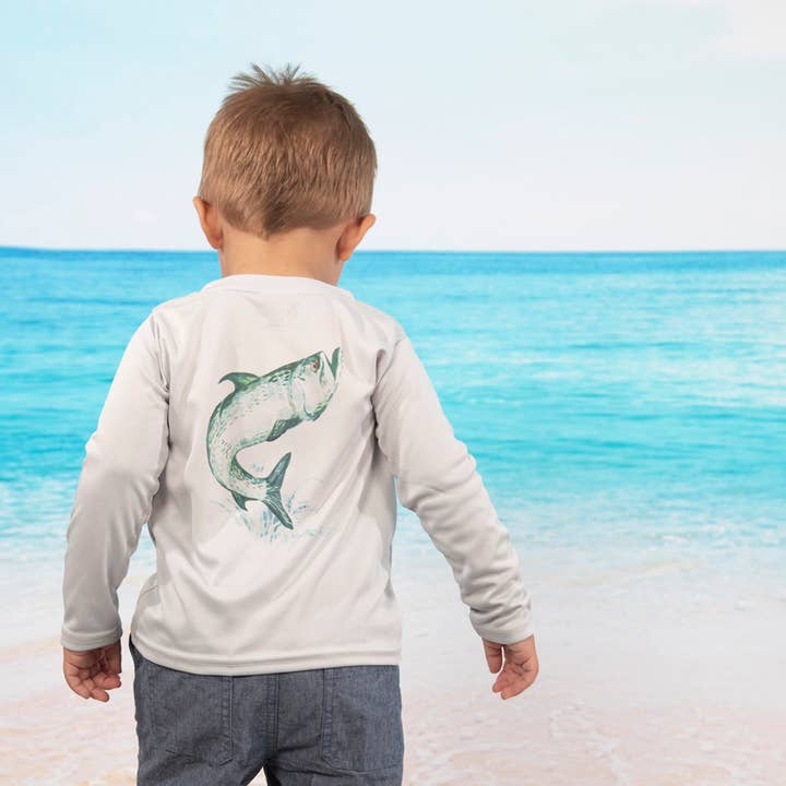 Two things we love the most....Florida and Sharks! So we combined them into one design for the boys in your life. These performance shirts are UPF 50 and will keep you cool and comfortable all day long in the summer heat with their wicking capabilities. Crew Neck with Long Sleeves. Shark Graphic on Back of Shirt and on front left chest. 100% Microfiber Polyester. UPF 50. Wicking Technology and Quick Dry For Your Comfort. Machine Wash. Tumble Dry. Imported Fabric. Printed in USA. Available in Kids and Toddler sizes. Please see kids sizing chart below: XS size 4 S size 6/8 M size 10/12 L size 14/16
