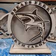 Showcase your sea glass and shark teeth with this small round shadowbox featuring a shark fin design. The frame highlights your ocean treasures, adding a touch of adventure and marine spirit to any space. Perfect for shark enthusiasts and beachcombers, this shadowbox brings the thrill of the sea into your home. Choose from 4 display styles: *Single Sided with wood back *Double sided with clear acrylic back *Window Hanging with included suction cup *LED Night Light base with Remote control Choose from 13 different color options. The face plate will be dyed the color of your choosing. The double sided Display and LED Night Light versions will be dyed on the front and back. The single sided and window hanging versions will be dyed on the front only. The opening to add your beach glass pieces measures approximately 0.75in x 0.5 in. Sea Glass Not Included.
