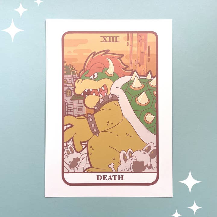 Each of these art prints measure 5x7inches and come printed on 14pt paper with a Matte finish. Each print comes in a plastic sleeve with a piece of cardstock inside to prevent bending. On the back side includes a sticker with the artist's information. These prints make lovely decor for any gamer!