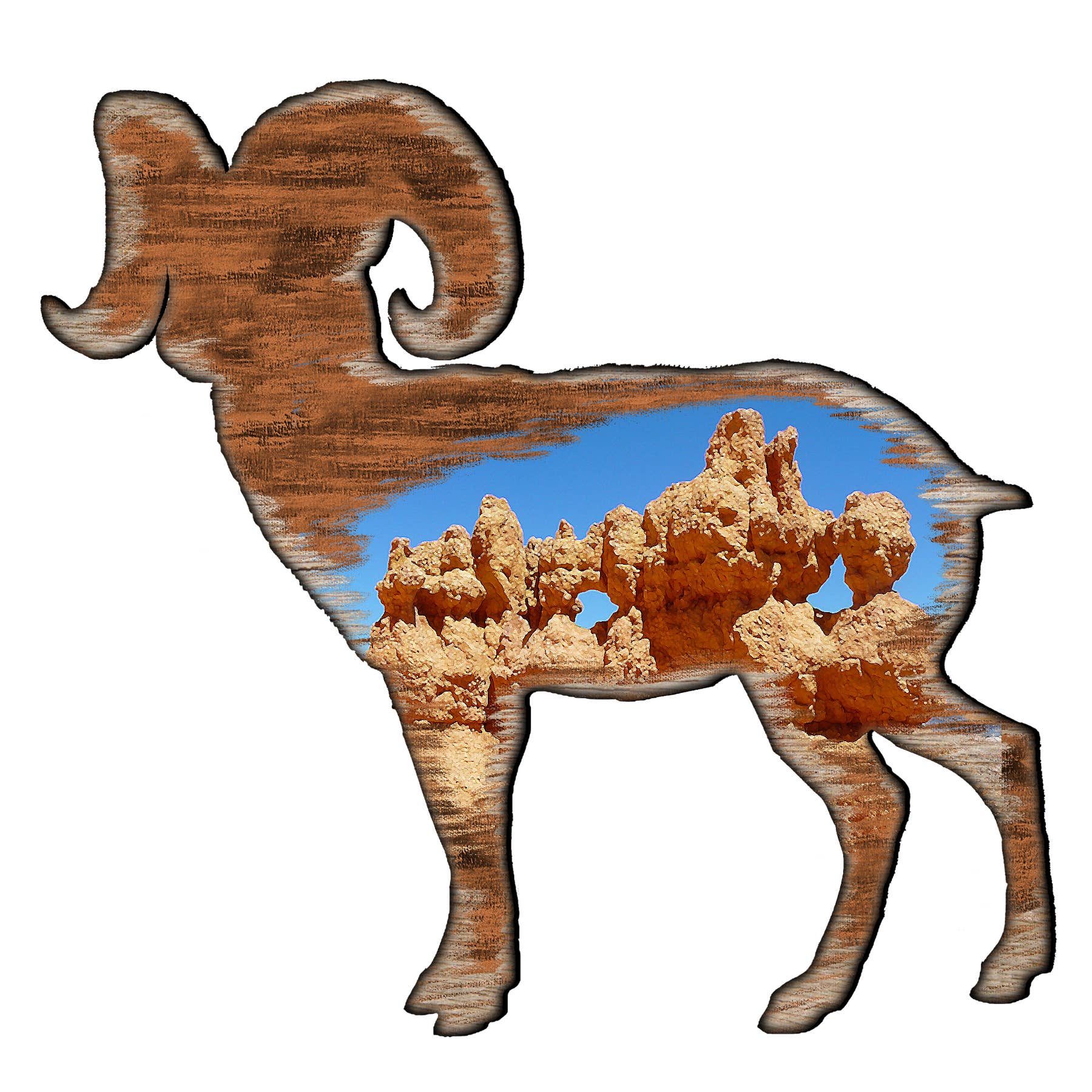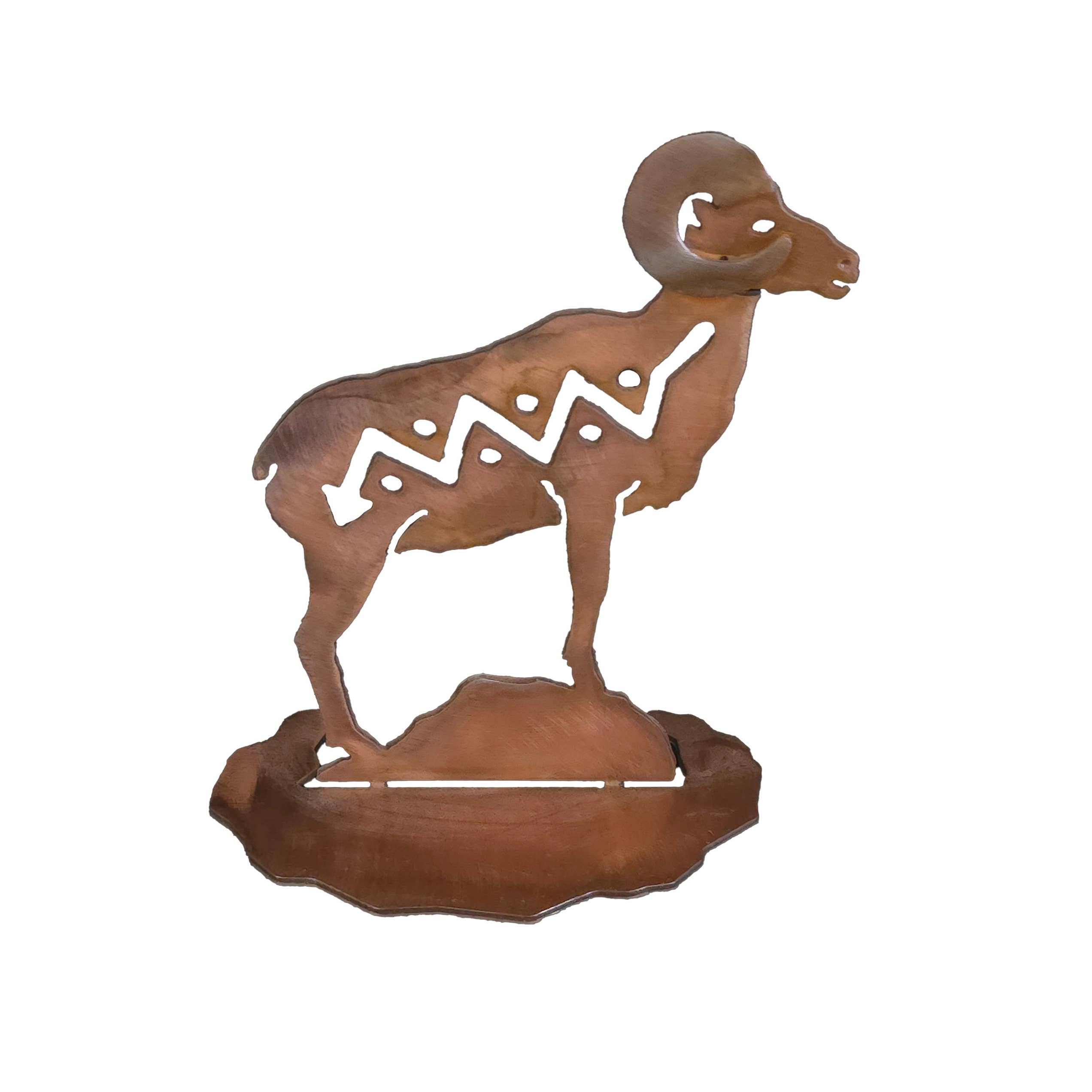 Bighorn sheep ornament. 4 H x 3 W This Ornament is made with 18 Gauge Steel. Do to the Natural Rusting Process color may vary slightly, Made In Prescott Arizona