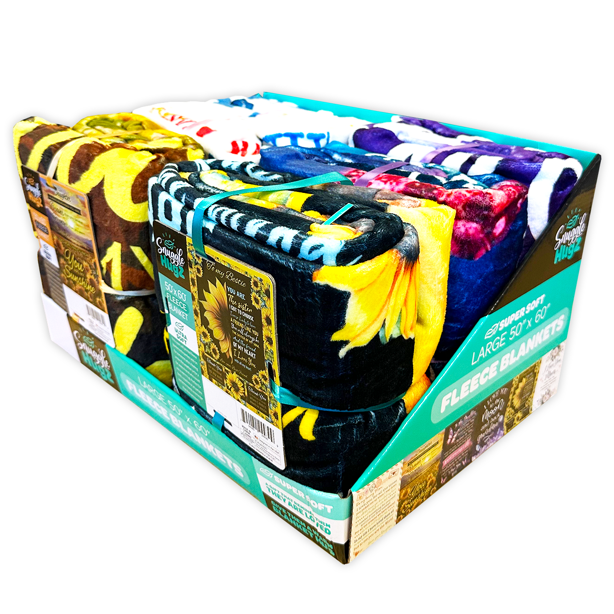 Printed Blanket display includes kids themed plush blankets. 60 X 50" blanket with patterns to match your playful style. Showcase this product in our PRINTED BLANKET or KIDS PLUSH FLOOR DISPLAYS WHOLESALE BULK ITEM