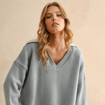 Wholesale Z812 Italian One Size Denim V-Neck Knit Soft Sweater LOOWIE