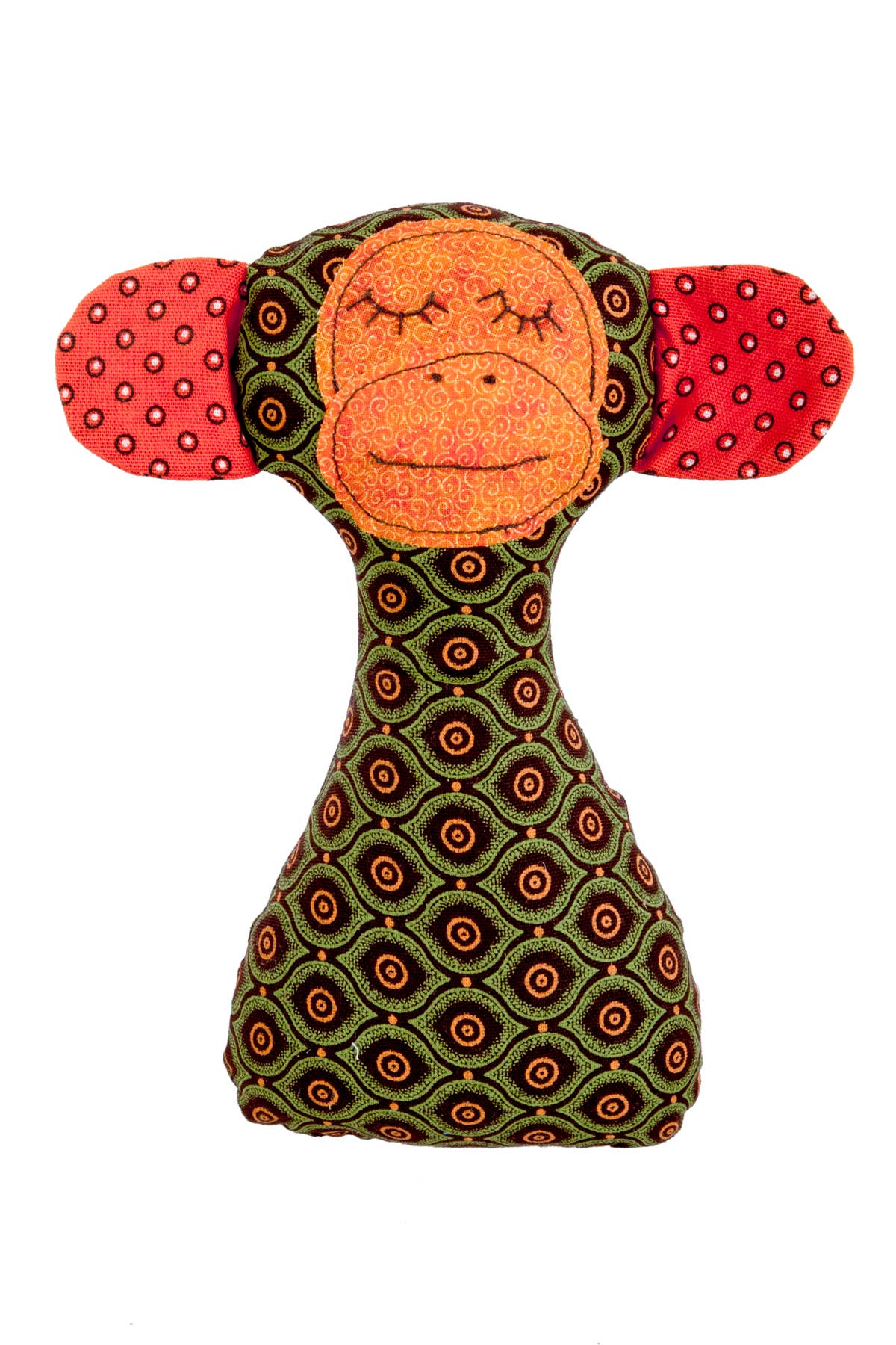 Our South African monkey rattle from the small brand Myang is designed and manufactured by an all-woman team, in Port Elizabeth, an area known for its poverty and high unemployment. The aprox. 15 cm tall soft toys are hand made of African stock fabrics and a great representative of the colorful nation.
