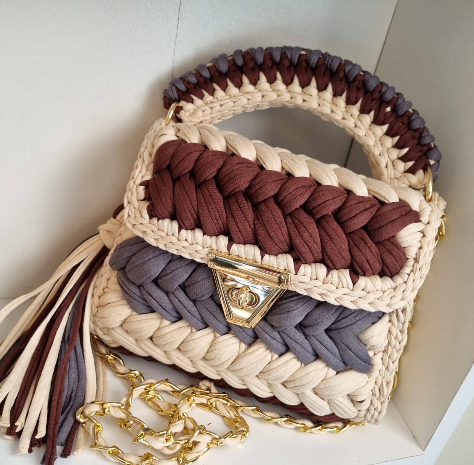 * 𝐔𝐍𝐈𝐐𝐔𝐄 𝐂𝐑𝐎𝐂𝐇𝐄𝐓𝐄𝐃 𝐁𝐀𝐆: %100 handmade bag is suitable for many fashion styles, can hold many items, phones, makeup, sunglasses, purses. (Size: 9x8x4 Inches - 23 (L) x 20 (H) x10 (W) Cm) It will complete your elegance with daily and evening clothes. * 𝐄𝐕𝐄𝐍𝐈𝐍𝐆 𝐂𝐋𝐔𝐓𝐂𝐇 𝐇𝐀𝐍𝐃𝐁𝐀𝐆: When you carry our crocheted bag on the beach, wedding, party or on the street, its sophisticated design and stunning trendy look will attract a lot of people’s attention. It shows off your fashionable and elegant taste. * 𝐍𝐀𝐓𝐔𝐑𝐀𝐋 𝐇𝐀𝐍𝐃𝐌𝐀𝐃𝐄 𝐏𝐔𝐑𝐒𝐄: Handmade crocheted bag made of premium T-shirt combed yarn with cottons.