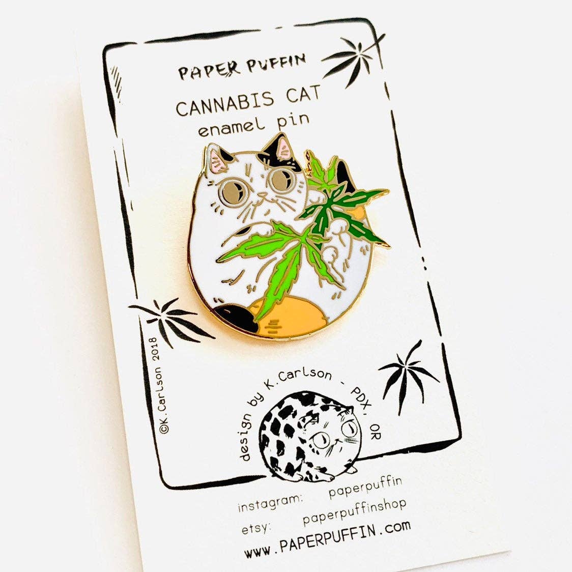 “Reading Cat” Enamel Pin This listing is for an enamel pin of a smiling black cat curled up with an open book. + size: 1.25" x 1.25" + finishing: hard enamel + clasp: metal butterfly + design by K.Carlson + backing card and cello bag packaging All work and photos ©PAPER PUFFIN Art by. K.CARLSON