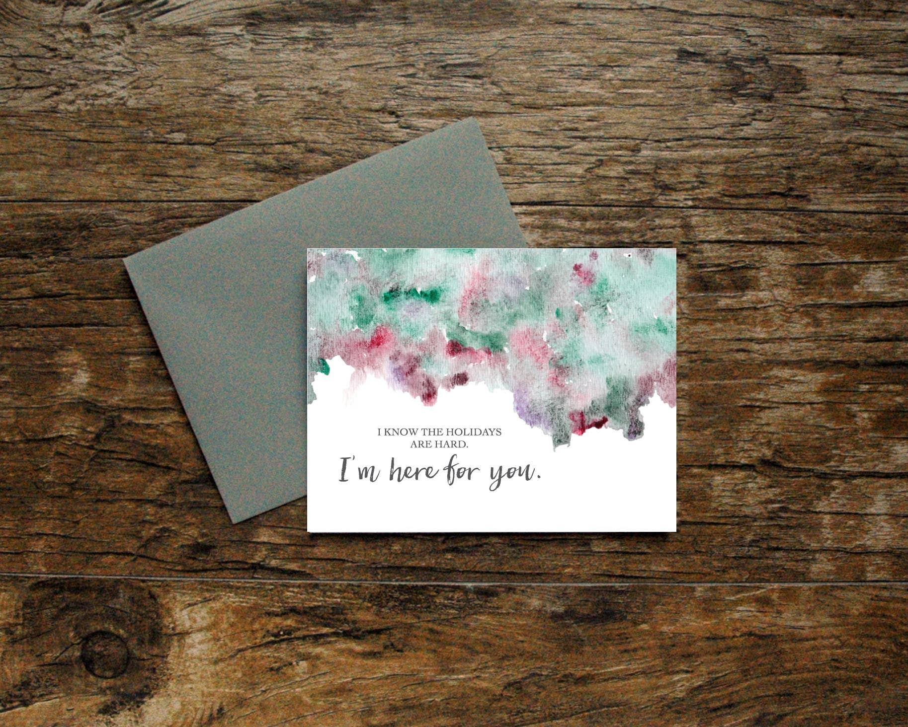 Your heart is breaking for this person you love. They're walking through the valley and there's truly nothing you can do to change their circumstances. You wish you could take away their hurt, but since you can't, you can stand by them and hold their hand through the valley. A poignant card for sympathy, bereavement, heartbreak and other life challenges. Hand-lettered "I'll stand beside you in the valley" on a hand-painted abstract background. Blank inside. Digitally printed on #110 felted white stock. A2 card with final dimensions of 4.25" x 5.5" Packaged with a beige Kraft envelope in a clear cello sleeve. Blank on the inside.