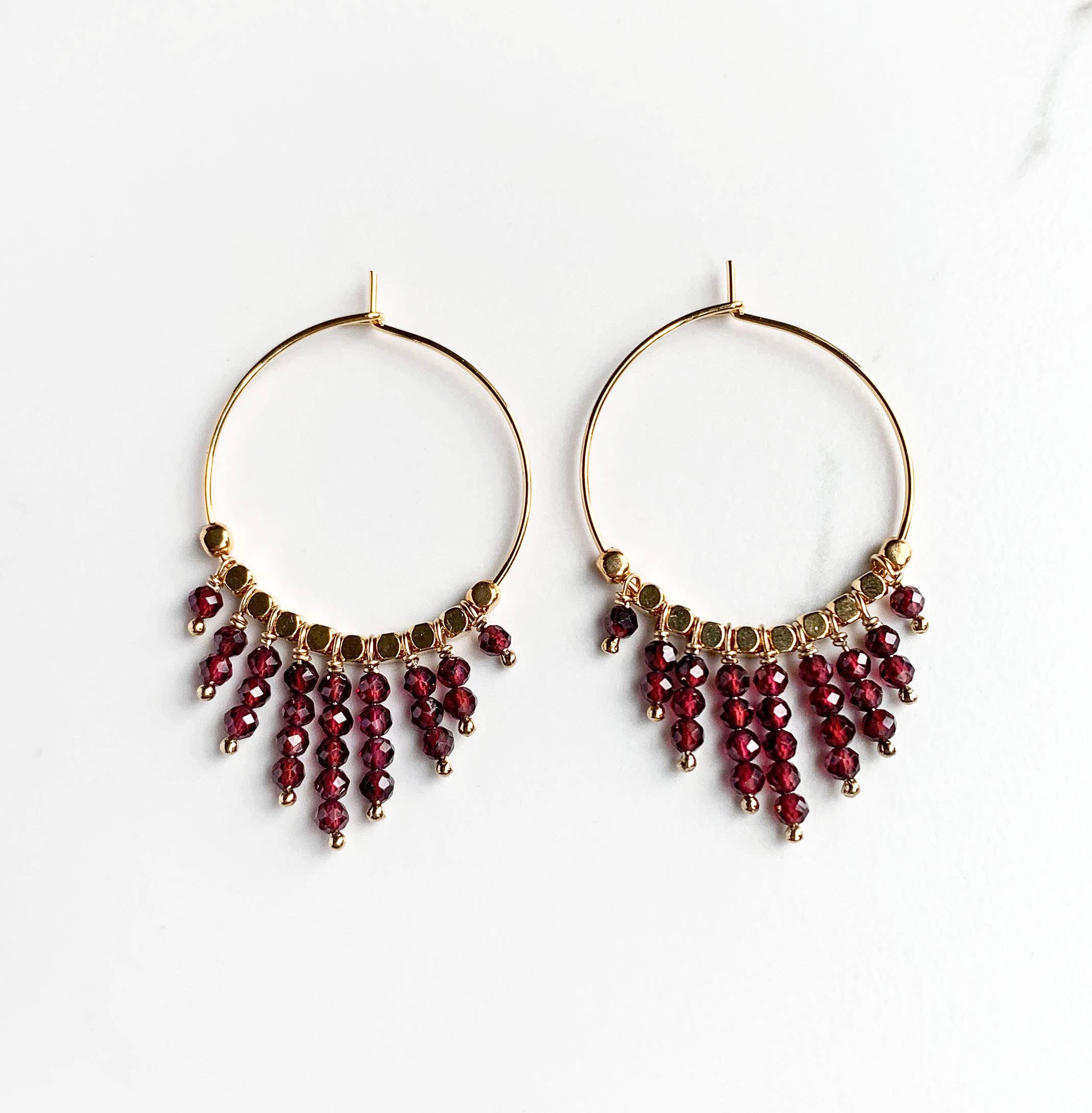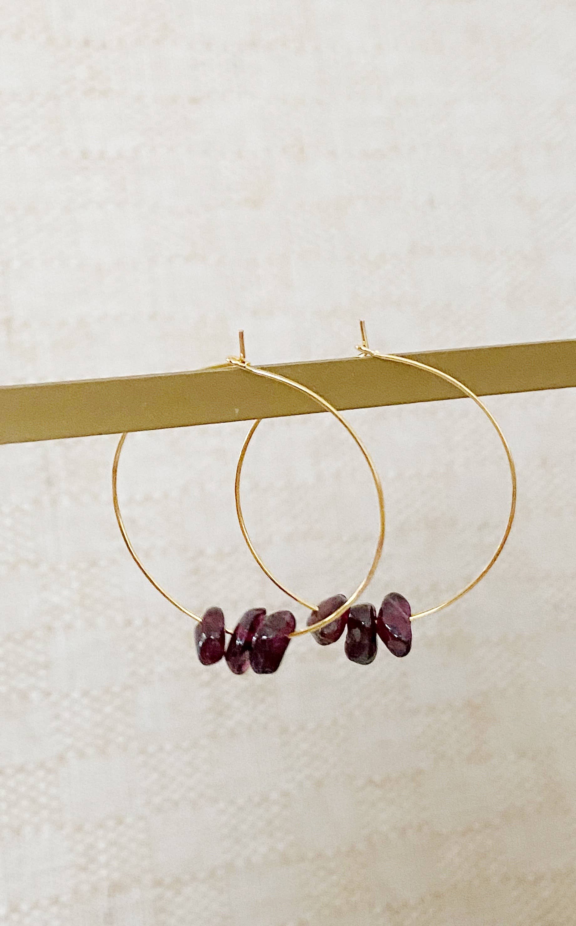 This class hoop design is elevated beautifully with assorted gemstones chips to add a touch of sophisticated grace to your next outfit. Length: 1"