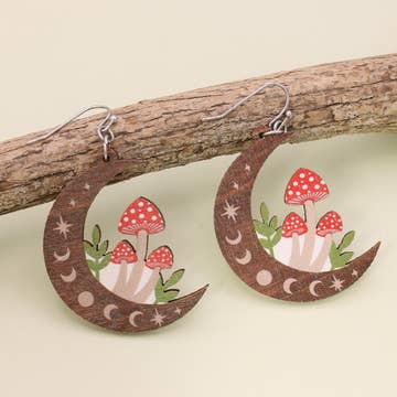 This earthy earring is perfect for fungi lovers, those who appreciate morel mushrooms, and anyone who enjoys unique jewelry. The morel mushroom is a striking example of nature's beauty, and these earrings capture its essence perfectly. They're made from wood and engraved with intricate details. Wear them with pride and show your love for all things natural. ☼Length (not including hardware): 1.625" ☼Total Length (including hardware): 1.875" ☼Width: .75" (at the widest point) ☼Earring Material: Baltic Birch wood ☼Hardware Material: Sterling Silver Note: These earrings are engraved on both sides in order to be flattering from every angle. Tag words: nature earrings, mushroom earrings, fungi earrings, morel earrings, morel, mushroom, natural earring
