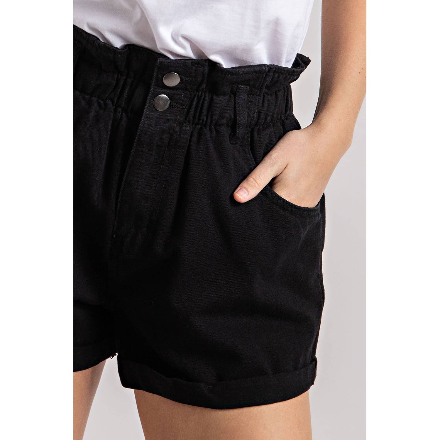 SUPER STRETCHY COLORED SHORTS - HIGH RISE - FITTED MINI SHORTS - BUTTON/ZIP FLY, BELT LOOPS - FIVE-POCKET STYLE WITH TWO FRONT FAUX POCKETS - FINISHED HEM INSEAM: 3 INCH FABRIC: 76% COTTON, 20% POLYESTER, 4% SPANDEX MACHINE WASH COLD