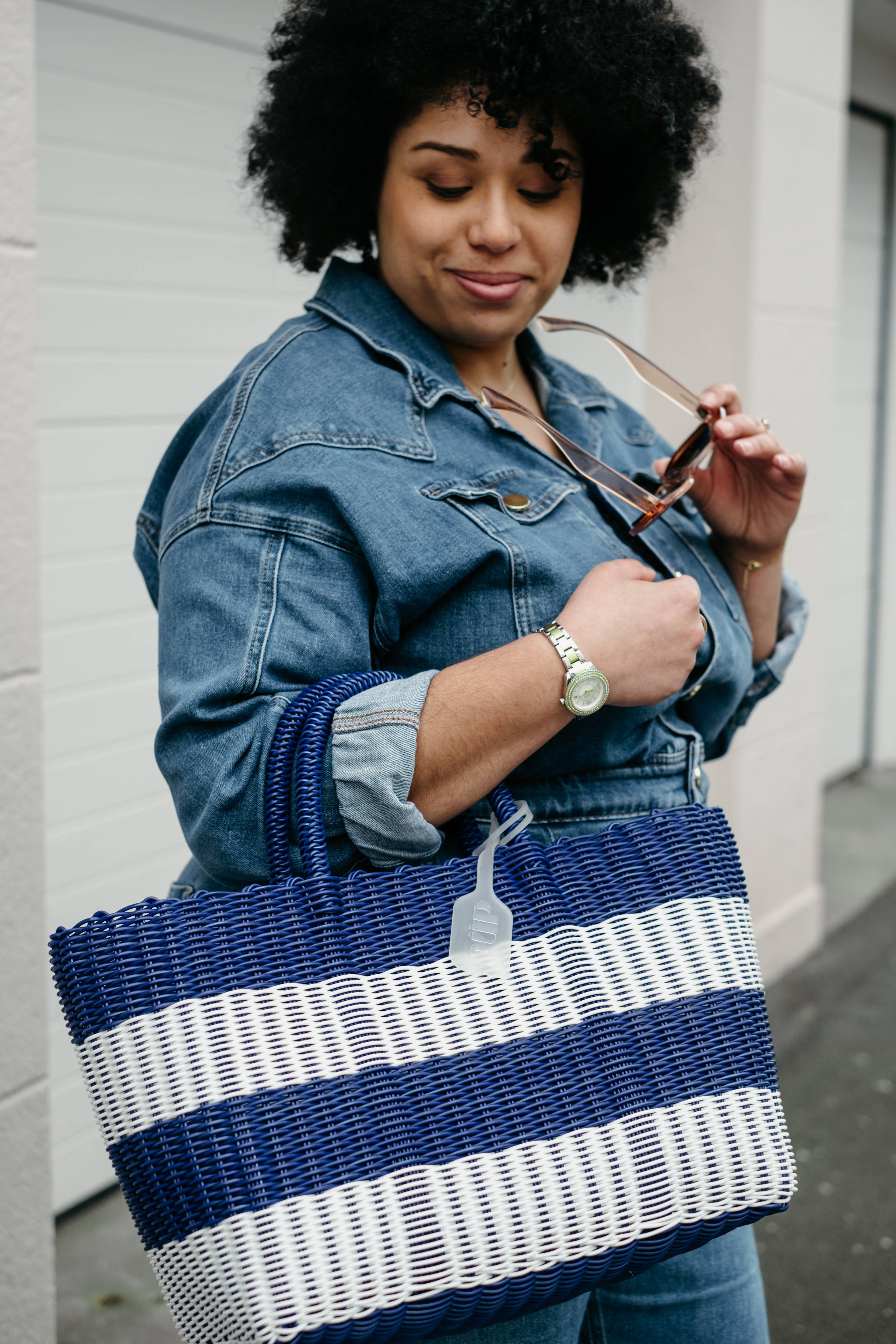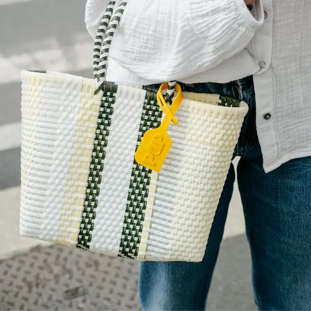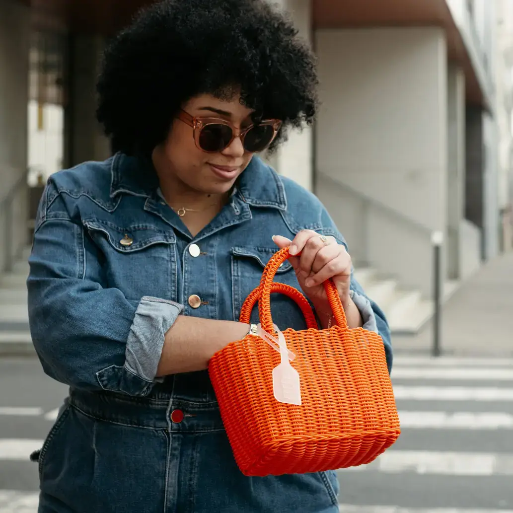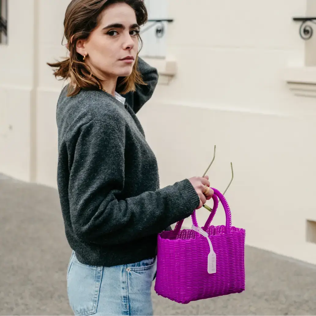 PÜP - Wholesale Beach Bag - Average basket in recycled plastic cherry color HANDMADE
