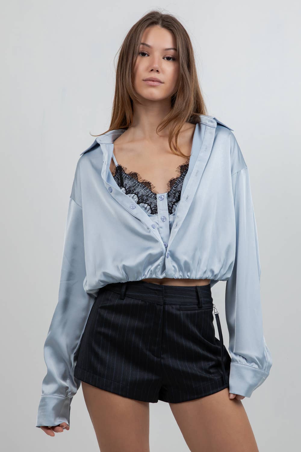 Silky Satin Button-Down Blouse