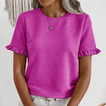 Double ruffled sleeve crew neck blouse 100% POLYESTER SIZE:S,M,L,XL,XXL MADE IN CHINA women blazer,bathing suits,crochet cardigan,cable knit sweater,wholesale t shirts,beach cover ups,ruffle dress,eyelet blouse,puff sleeve top,floral dress,women t shirt,women shorts,women dress,women pants,bohemian,western sweater,summer top,summer t shirt,summer dress,maxi dress,summer tee,women summer top,summer blouse,spring apparel,2024 women apparel, western,western apparel,holiday shirts,plus size clothing,new products,women dress,women clothing,spring, summer,women dresses summer,long skirt,summer skirt,summer vest,pockets,floral t shirt,denim shorts,jeans,women sets,summer apparel,holiday,tank top,vest,blouses dress,oversied,plus size,sundress,chiffon,casual dress,sleepwear,botton down,beach dress,modest dress,formal dress,wedding dress,pink dress,women's shirt,printed dress,pleated dress,father's day shirt,father's day,Mother's Day,father's day shirt,Mother's Day dress