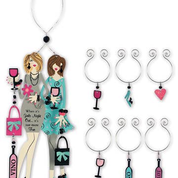 Jazz up your glassware with Shades of Pink Acrylic Rectangle Wine Charms. Featuring warm pink and orange colors on a chic gold ring, these charms are sure to add a touch of swanky swag to your stems. Make a bold statement and stand out at any event from bachelorettes and birthdays to a gabby girls night in with these stylish cocktail markers. Time to elevate your wine (and fancy cocktail) game! Tip: Perfectly packaged for gift giving! Pair this with our cocktail beverage napkins or party coasters and a bottle of wine for a complete gift! Made in the USA Set of 8 charms in a warm color palette Premium acrylic including matte, metallic, glitter, and tortoise Keep out of reach of children Charm Dimensions: Approx 1.75"H Package Dimensions: 7.5L x 4H x 1D inches Reusable GTIN 00810165081642