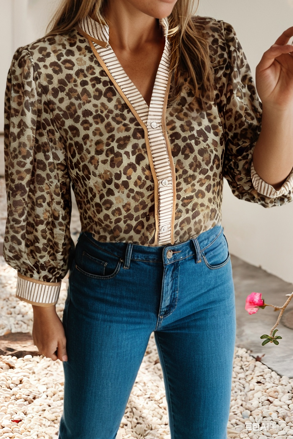 95% POLYESTER 5% SPANDEX LONG PUFF SLEEVE BASIC COLLAR NECK ANIMAL URBAN RIBBED BUTTON DOWN TOP WITH ROUND HEM AND STITCH DETAIL MODEL SIZE: HEIGHT 5'6", BUST 32", WAIST 24", HIPS 32"" WEARING SIZE: SMALL *The garment color may differ slightly upon arrival due to being taken with professional lighting also depending on what device you maybe using to shop*"