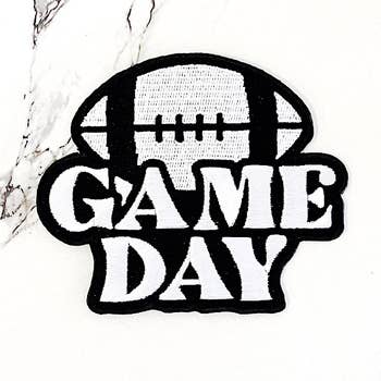 🔍 Patch Details: Size: 2.5 x 2.75 inches Colors: Black and White Material: High-quality embroidered fabric Application: Iron-on backing for quick and secure attachment Design: "Game Day" text with football symbols Gear up for the big day with our "Game Day" Embroidered Iron-On Patch! This patch is a must-have for sports enthusiasts, tailgaters, and anyone who loves the excitement of game day. 🏈 Celebrate Game Day: Whether you're a die-hard fan or just love the thrill of football, this patch is a fun and stylish way to show your enthusiasm. It's perfect for adding a touch of game day spirit to your favorite jacket, bag, or gear. 🎉 Ideal for Any Team: No matter what team you’re cheering for, this patch is versatile enough to complement any team or game day outfit. It’s a great way to enhance your fan gear and showcase your game day excitement. 🔧 Easy Application: With an iron-on backing, this patch is simple to apply to any fabric item.