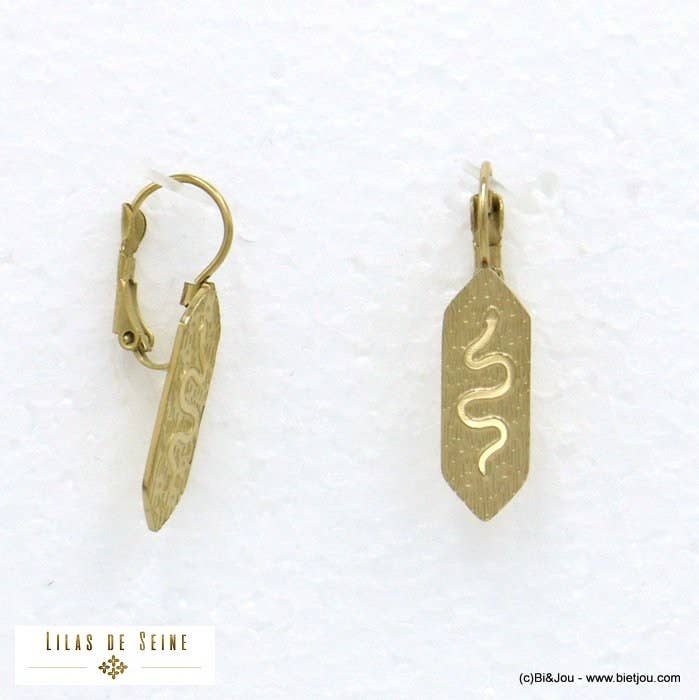 Mini hoop earrings in gold stainless steel (12x22 mm), adorned with a stylized flower pendant with a natural stone or mother-of-pearl cabochon. These earrings are fastened to the ear with a hinged hoop clasp. This jewelry is made of natural stone or mother-of-pearl: The shape, color, and size may vary. Nickel-free, lead-free, cadmium-free.