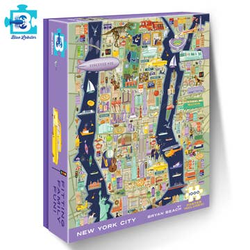 Be our VIP guest on a jam-packed getaway to the Big Apple! You’ll visit dozens of iconic landmarks—and discover countless lesser-known gems. You can almost smell the pizza and hear the street corner musicians. Friends and family of all ages will delight to join in and help piece together this colorful map puzzle. SKU: BL 2006 Availability: Ships in 1-2 Business Days No. Pieces: 1000 Finished Size: 19 1/4" x 26 5/8" Artist: Bryan Beach Ages: 8+ Piece Size: Average