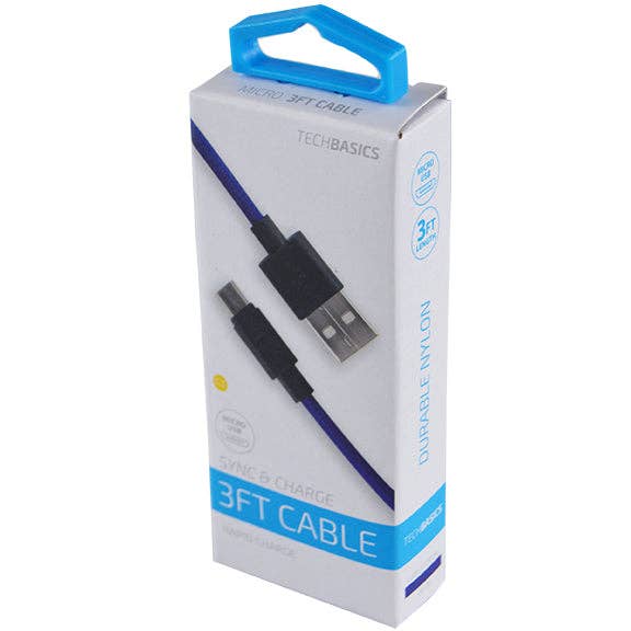 iTech361 - Wholesale Charging Cable - MICRO USB, TPE RUBBER CORD, OCTAGON CLAMSHELL 10FT/3M0