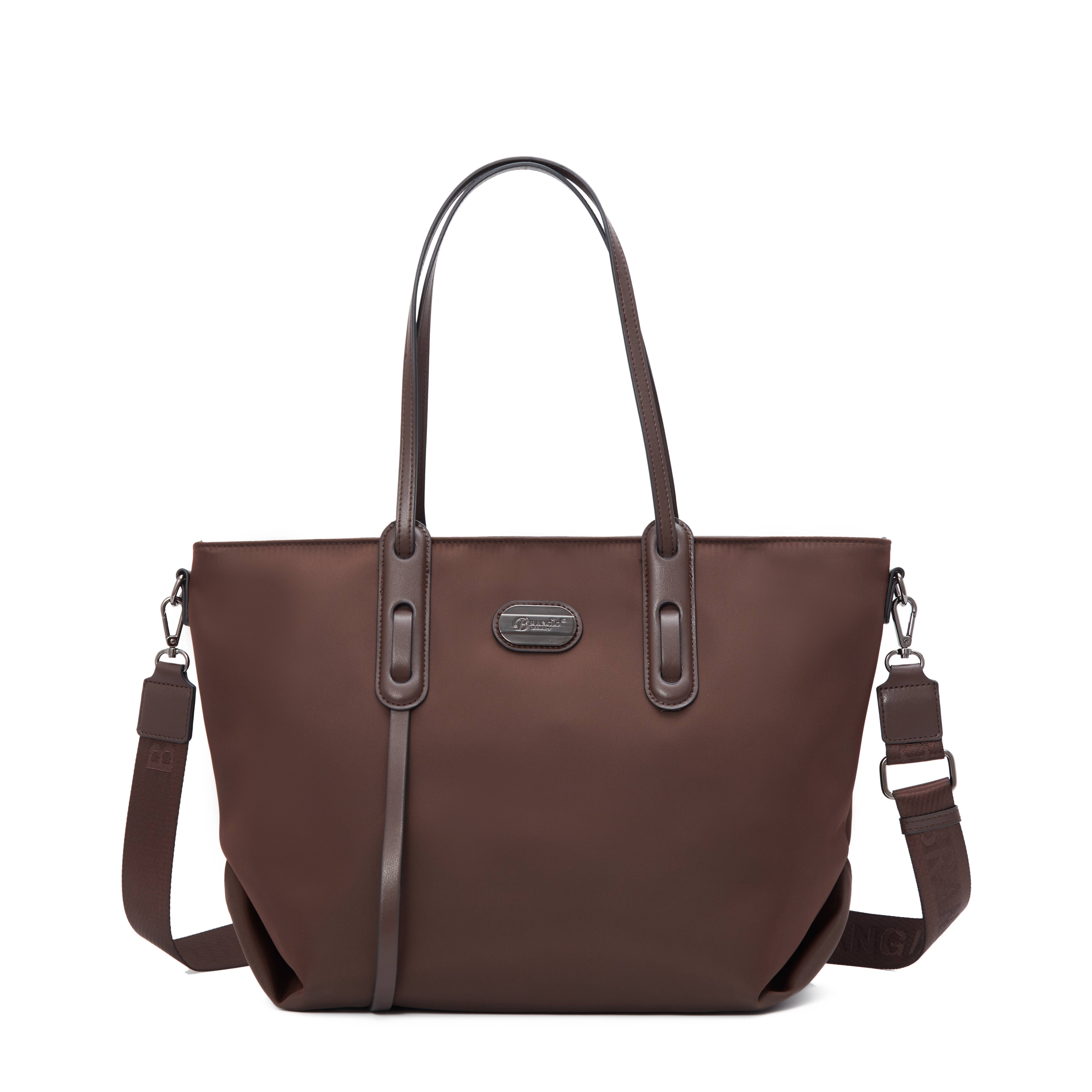 Upgrade your daily accessory game with this classic Pebbled Vegan Leather Shoulder Tote. Defined by its rich texture and stylish contrasting brown handles, this bag offers a sophisticated look suitable for the office, brunch, or shopping trips. The distinctive center vertical stitching and gold-tone ring hardware add modern structural details that elevate the overall aesthetic. Stay perfectly organized without sacrificing style. The interior features a charming polka-dot lining and a smart triple-compartment design, including a center zippered divider to keep your valuables secure. With ample room for your tablet, wallet, phone, and cosmetics, this bag ensures you have everything you need right at your fingertips while maintaining a sleek profile. Key Features: - Premium Material: Crafted from high-quality pebbled vegan leather that is soft to the touch yet durable. - Smart Organization: Features a center zippered divider compartment, interior wall zipper pocket, and slip pockets. - Stylish Accents: Designed with contrasting brown dual top handles attached via elegant gold-tone O-rings. - Secure Closure: Equipped with a smooth top zipper closure to keep your belongings safe. - Signature Lining: Finished with a playful and durable polka-dot fabric interior. Dimensions & Specifications: - Length: 17 inches - Height: 12 inches - Width: 3.5 inches - Strap Drop: 9.5 inches - Material: PU Vegan Leather