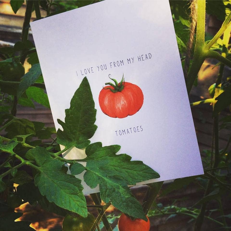 Taken from my experiences working out on farm here in the agricultural hub of the U.S., this card is well suited for the fellow gardener, flower lover, farmer or homesteader. A perfect choice for Valentine's Day, anniversary, or just to say I love you to a friend or loved one. Size: A2 Card- 4.25" W x 5.5" H folded - blank inside Paper: 110# matte felt texture paper Includes kraft recycled envelope Packaged in clear protective sleeve