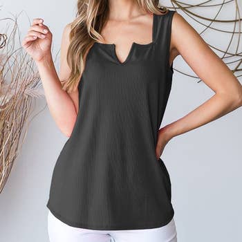 Plain Square Neck Tucked Stitching Tank Top ZZKF784