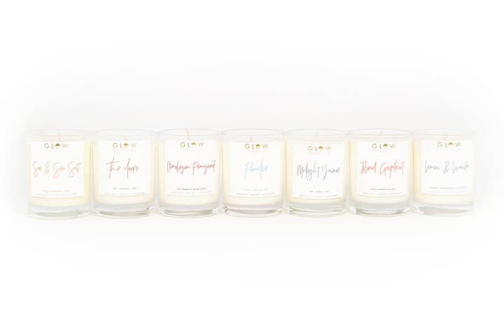 Pick three of your favorite scents! Simply enter in the candle names in the "Special Instructions" section in your cart. A contemporary 14-ounce glass jar is paired with a clean and classic label. This candle will look simply beautiful in your home, office or store. Accompanied by our signature box. Hand poured in small batches in St. Louis, Glow candles are made with all natural, eco-friendly soy wax derived from American grown soybeans. Lead-free cotton wicks and premium-grade fragrance oils allow for a clean 70-hour burn time. Candles have no dyes and are non-toxic. Choose the GIFT WRAP option at checkout. All gift wrap orders will ship on or by 5/3 in anticipation for Mothers Day!