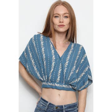 A TENCEL™ top featuring smocking detail and chest ribbon strap finish. (S)Chest: 15", Length: 10.25" Model is 5'9" and wearing a size Small