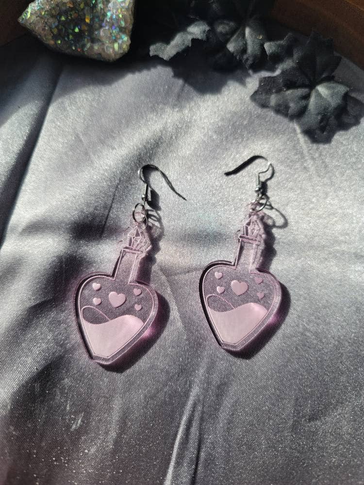 Frosted Iridescent acrylic hearts with "smut book energy" laser engraved. These are approximately 1.6 inches in length and lightweight! FAQ: Jewelry hooks are stainless steel. Leverbacks are available by request in the "notes" section of check out. All hooks come with rubber backings. Thanks for looking! :)