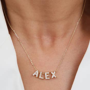 Name Necklace in 2.356 gms of 14K yellow gold with 2.408 GWt. Studded with 81 diamonds totalling 0.26ct this is perfect for a personalised gift.Orders will be processed within 3-4 weeks upon availability.