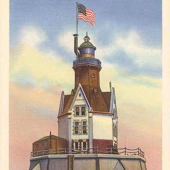 Michigan's "Victorian Port City" was once home to the lumber industry, but now it is beloved as a coastal resort town on the shores of beautiful Lake Michigan. Original vintage-style travel art by Brian Walline featuring Manistee's North Light, available in two distinct color palettes!. - - - Recognition: This community occupies the ancestral, traditional, and contemporary Lands of the Anishinaabeg peoples. In particular, the town resides on Land ceded in the 1836 Treaty of Washington.