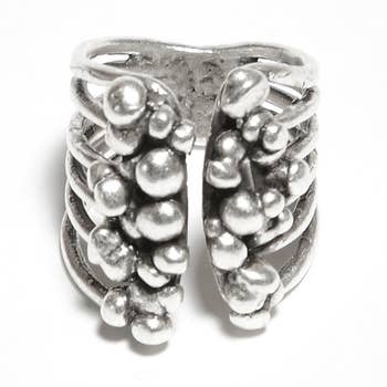 Sterling silver crawling octopus ring with granulated detail. Approximately 5/8" wide.