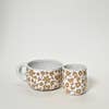Max measures roughly 2.5 inches tall by 4.5 inches in diameter, not including the handle Mini measures roughly 2.5 inches tall by 2.5 inches in diameter, not including the handle Speckled white glaze on a brown clay base