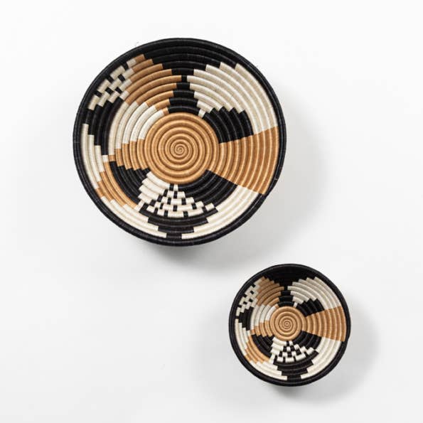 For the design of the Akaneri series, Local + Lejos designer Sheeva took a truly traditional pattern of the Abizeranye Cooperative in Rwanda and tweaked the colors to fit perfectly into a modern home. The Akaneri design now includes pieces from the Natural Neutrals Collection and the Indigo Collection. With so many color variations, it is a wonderful option for creating or adding to your bowl wall. All of our woven bowls are created from dyed natural sisal fibers woven over a core of forest grasses. The weavers begin in the middle of the bowl, carefully threading the sisal around and around to create this beautiful design. The tea color is created when the naturally-white sisal fibers are steeped in Rwandan-grown tea leaves! Celebrate your love for people, resilience and beauty with our artisan-made home décor and gifts. Azizi Life is committed to loving, fair trade, ethical relationships. A portion of profit is donated to benefit our community impact projects. Orders of $200+ in woven bowls, trays, and wall hangings receive a free partially woven bowl and story card to help customers see how the bowls are made. One per store, while supplies last. The Handcrafted Details - Each woven bowl has a loop on the back for hanging. - Our hand woven bowls are crafted from natural sisal fibers threaded over a core of locally-gathered forest grasses. - Artisans work 1-2 days to weave a small bowl and 2-3 days to weave a medium bowl. - Dimensions: small bowl 7″d, medium bowl 12″d. - Care: Wipe with a dry cloth. - Note: Azizi Life goods are crafted from natural and locally-available raw materials. As such, each product is unique and may vary slightly in size or shade of color. Woven products exposed to sun or water may fade or become more malleable with time. - Ethically crafted by a person in rural Rwanda. - Includes a beautiful tag with the name of the artisan and their cooperative. Visit the Artisans section of our website to read about the cooperative and see a photo of the artisan behind your piece. Perfect for gift-giving—this special touch makes your purchase even more meaningful. -Azizi Life is a member of the Fair Trade Federation and committed to fair trade principles. -Every product supports our community impact projects. -Also available in Rwanda at the Ellen DeGeneres Campus of the Dian Fossey Gorilla Fund.
