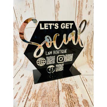 Let's get social - Social media sign is perfect for your checkout stand in a brick and mortar or mobile/vendor booths. Customizable for you - Message me your brand information for your board. Can be fully engraved or mix of 3d words and engraving.