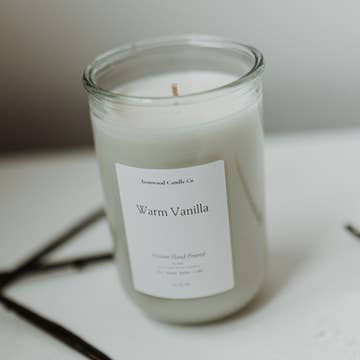 Infuse your evenings with the rich allure of vanilla and jasmine, with a touch of spicy-sweet cardamom. Top: Vanilla, Jasmine Middle: Cream, Cardamom Base: Sandalwood, Musk, Tonka Bean 9 oz straight-sided amber jar, contains 7 oz of wax. Measures 3.56" x 2.81". Approximately 35-40 hours of burn time.