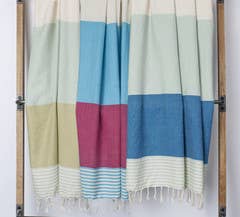 100% Turkish Premium Cotton Elevate your retail offerings with these top-notch towels today Terry Backing- Enjoy superior absorbency and quick drying. Fast Drying- Thanks to the unique weave technique and 100% natural premium cotton it dries super fast Colors- Blue Mustard Green Beige rose pink. Super Portable- Great for travel and beaches, it fits easily into a small luggage and beach bags. 5-6 towels fits into a small beach bag. Machine Washable- Cold Wash and tumble dry at low temperature is recommended. The quality is superior to many other towels in the market. These are premium cotton towels. These Striped Turkish Towels can be a great idea as gifts. Product Dimensions: Weight: ~15 Ounces/ 420 grams Length: 70 inches (180 cm) Width: 35 inches (90 cm) Premium Turkish Towel | Beach Towel | Peshtemal | Hammam Hamam | Bath Towel | Beach Gifts | Bridal Bachelorette Party | Interior Design| Farmhouse| Corporate Gifting| Promotional| Hotel | Decorations | sandless dropshipping |