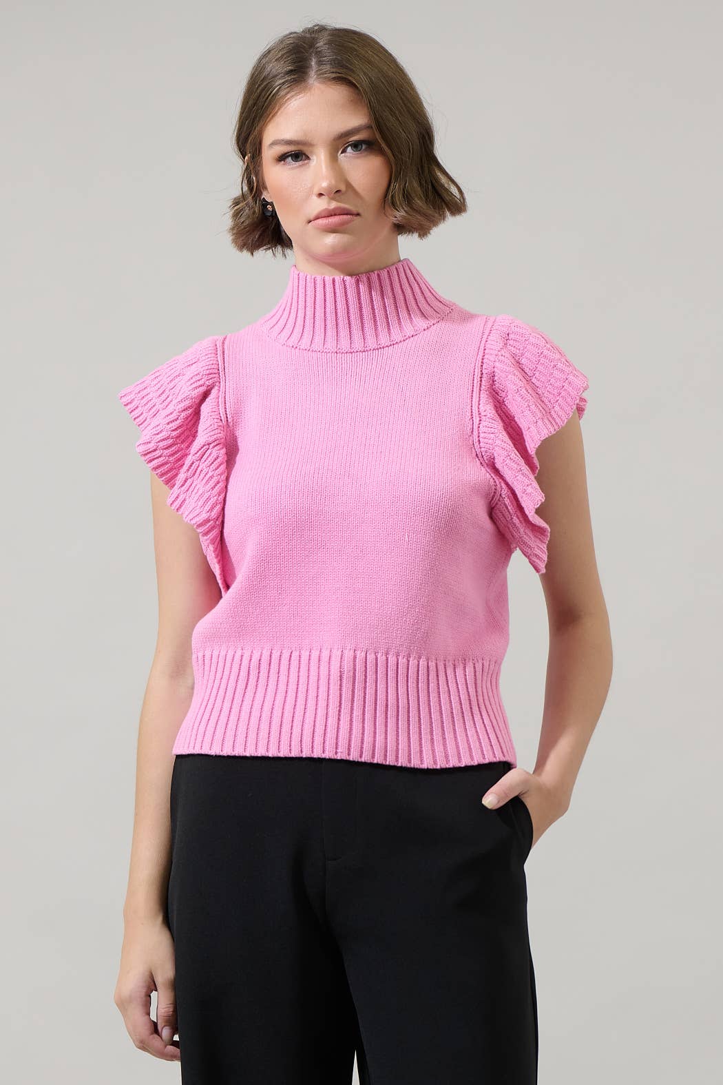 these are quite a bit shorter than what they appear on the model. On the model, they almost woke a little oversized unfortunately, they are not oversized and I was a little disappointed with the length. I’m afraid that most of my customers are going to shy away from these due to the length. but great thickness and coloring. I just feel like I only got half of a sweater.