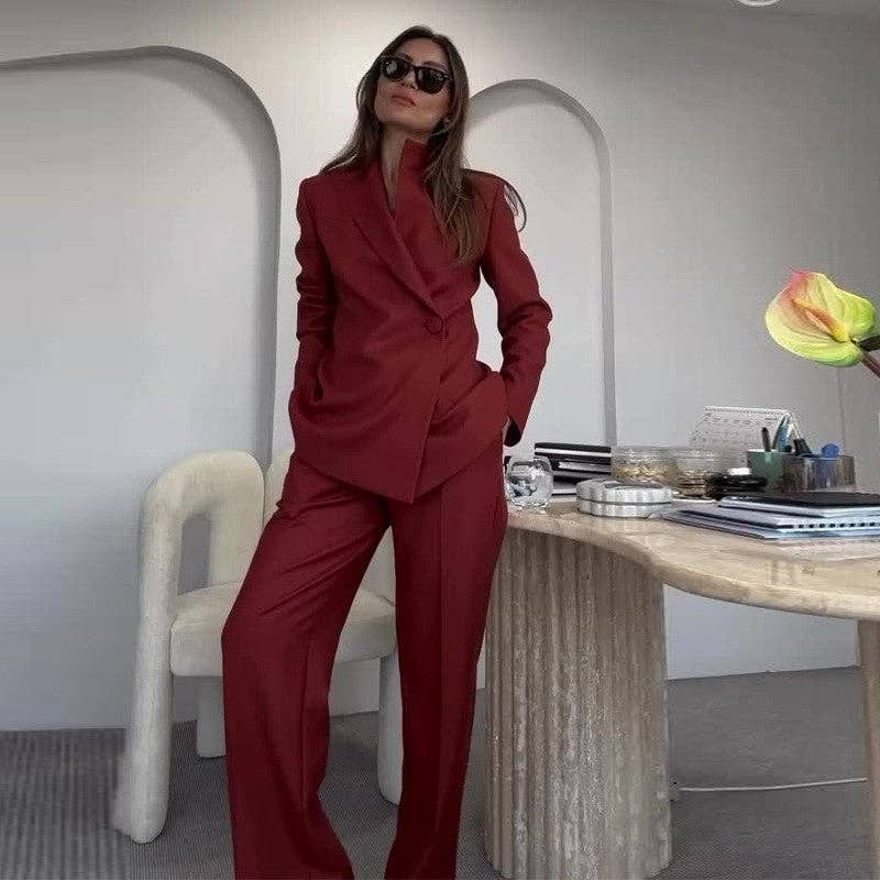 Burgundy Suit Set - Jacket And Pants