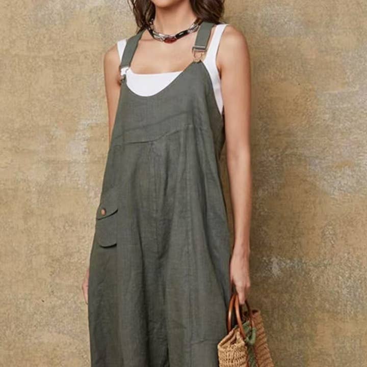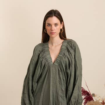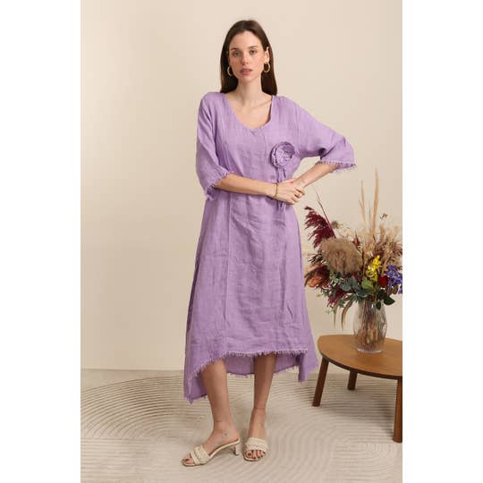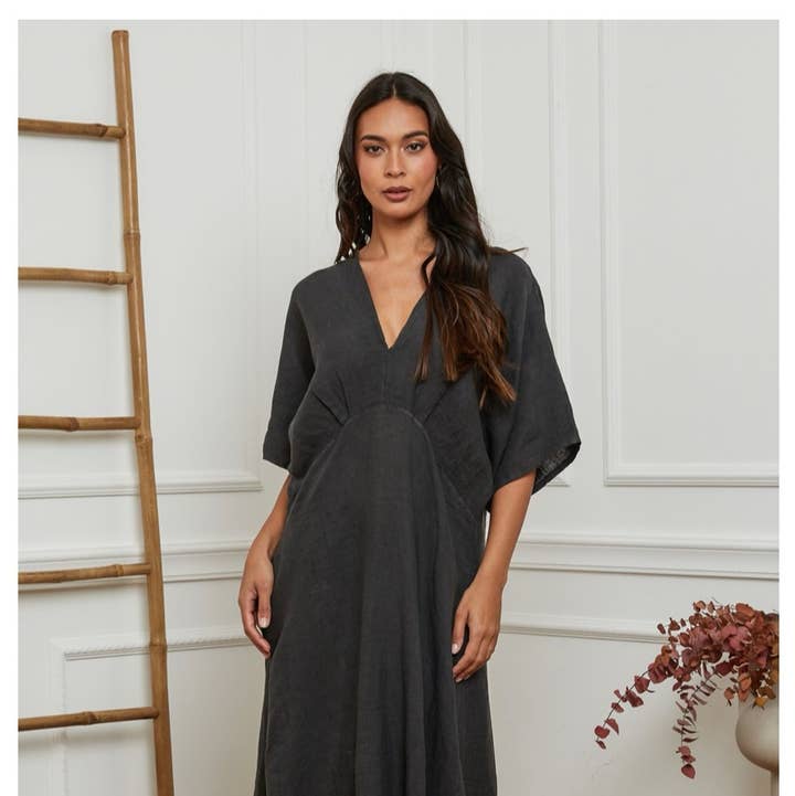 100% Linen v-neck long dress