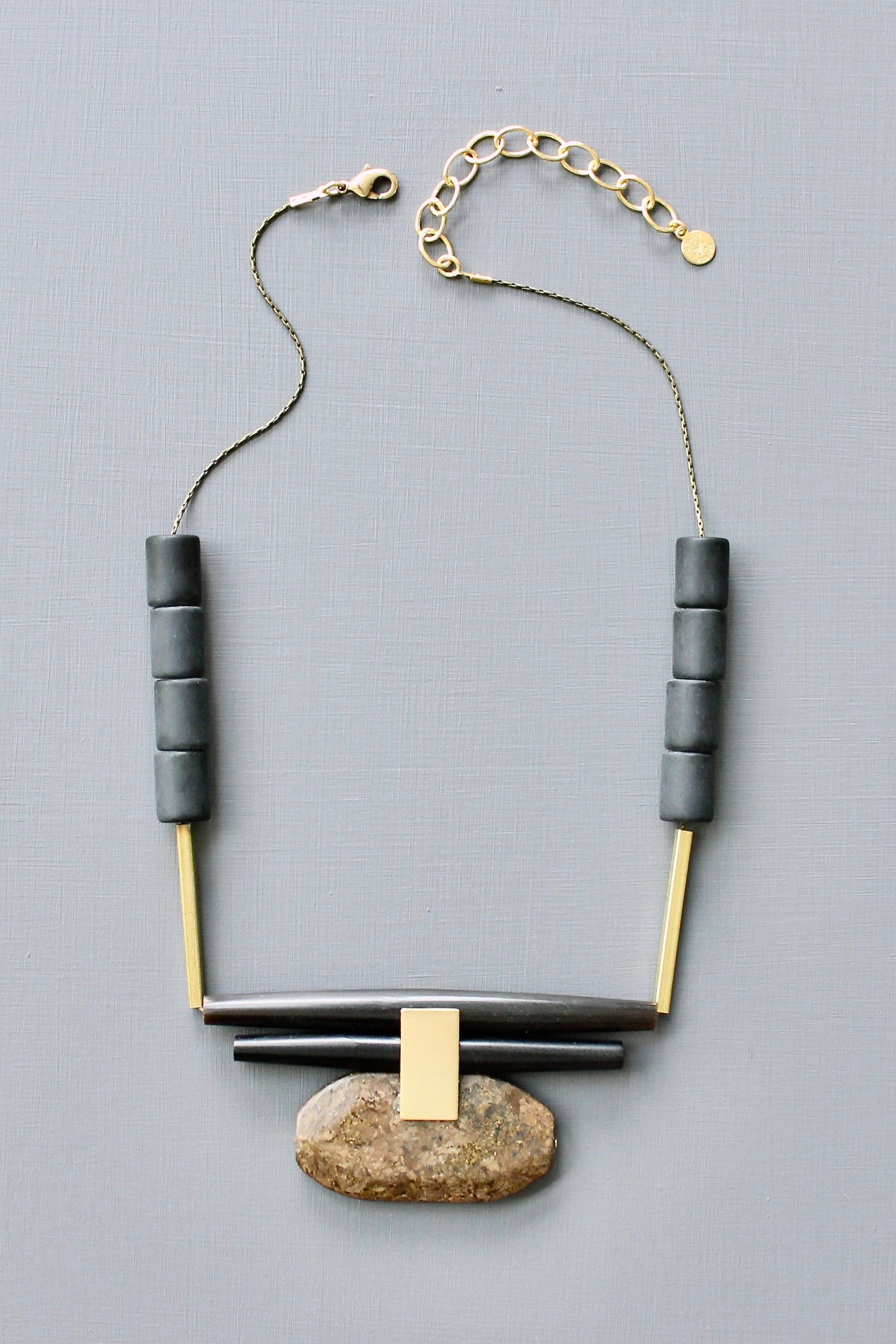 Layered Silver and Gold Organic Pendant Necklace: This eye-catching necklace showcases a stunning cluster of layered organic-shaped pendants in silver and gold tones. The minimalist design and natural colors create a timeless and elegant look. The necklace is finished with a magnetic clasp for easy wear.