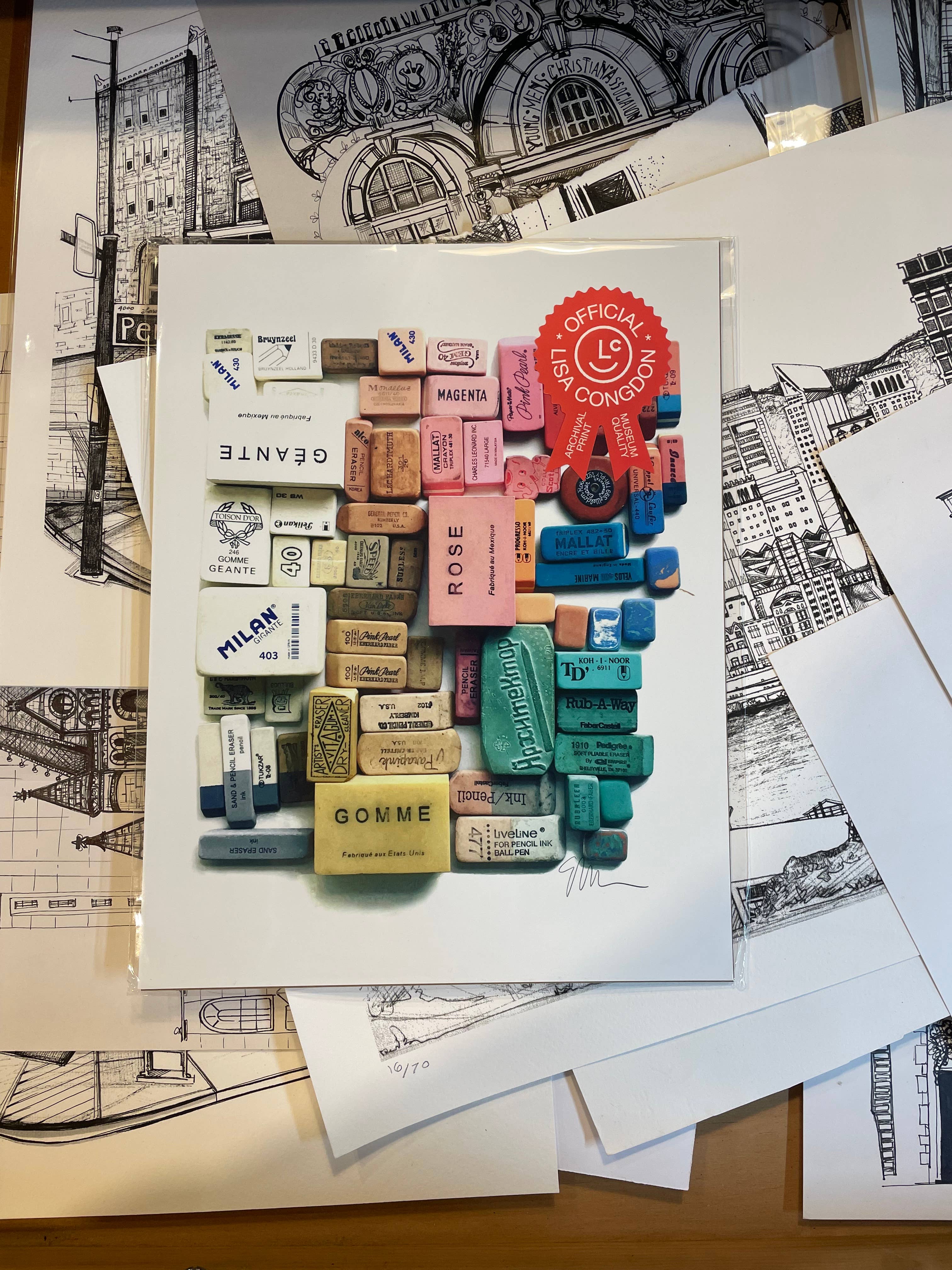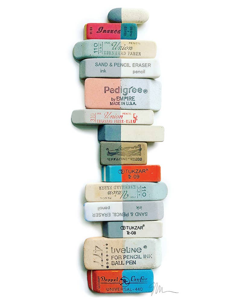 “Eraser Arrangement No. 1” is an archival photographic print by Lisa Congdon. Our acid-free giclée prints are printed on lush matte art paper in Portland Oregon. Our prints are only available here in our shop and in a few hand-selected retailers around the world. 8.5" x 11" open edition PRODUCT DETAILS Packaged with a stiff matboard backing in an eco-friendly glassine envelope. All work copyrighted © by Lisa Congdon.